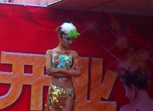 信宜黄金店开业请裸胸彩绘模特助阵 引强烈围观